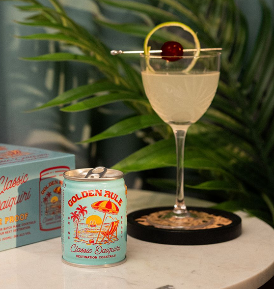 Enjoy the Golden Rule Daiquiri chilled in a classic coupe or cold and shaken from the can!